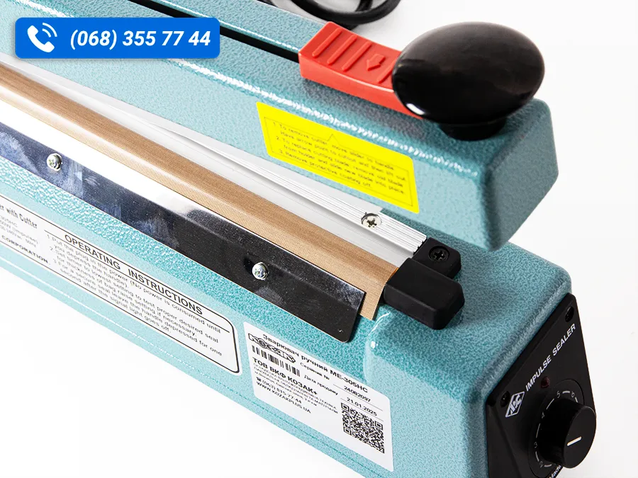 Електричний зварювач пакетів ME-405НC - ручний настільний зварювач полімерної плівки з механічною обрізкою. Зварювач призначений для зварювання пакетів та мішків (формування шва) з різних плівок - поліетиленової, поліпропіленової плівок, а також ламінованого паперу в процесі виготовлення різних виробів з термозварюваних матеріалів для пакування товарів.