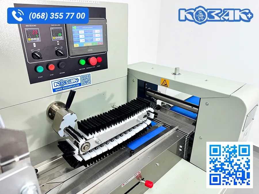 - Панель керування машиною, зручне і швидке налаштування параметрів, коли продукт сприймається датчиком, він автоматично упаковується, в іншому випадку процес зупиняється.