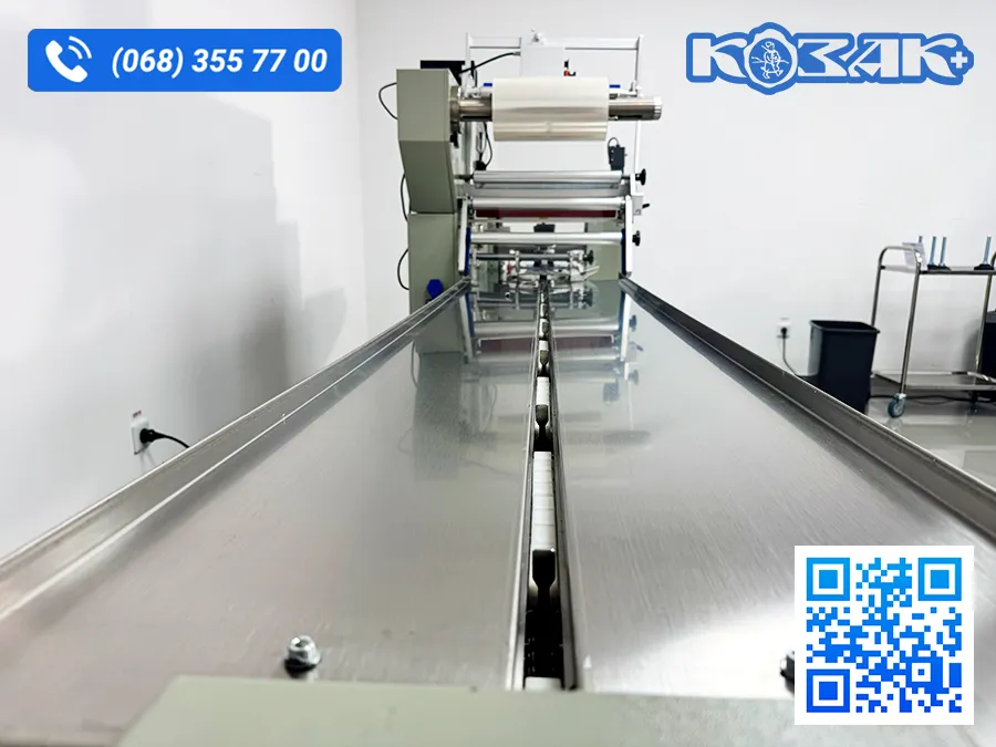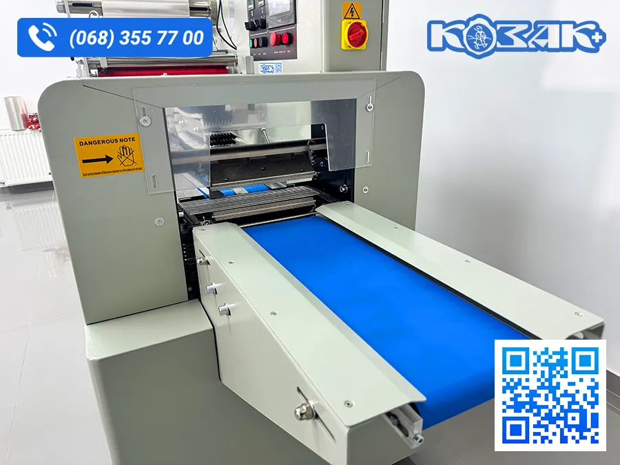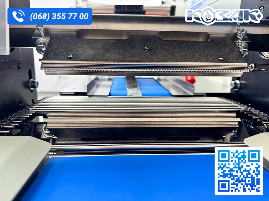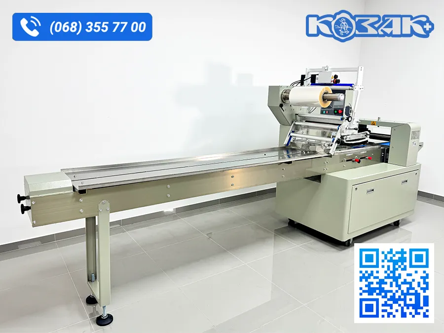- Три сервомотори, перетворювач і програмований логічний контролер, гнучке налаштування довжини пакета і обрізання, що економить час та плівку.