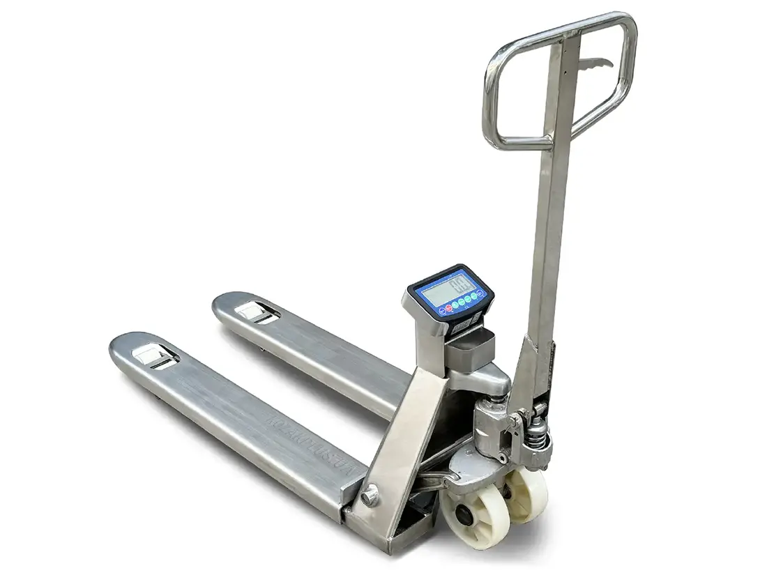 • Висока вантажопідйомність. Вагові палетні візки з нержавіючої сталі зазвичай мають високу вантажопідйомність, зазвичай близько 2,0/2,5 тонн, що підходить для обробки та зважування важких вантажів.