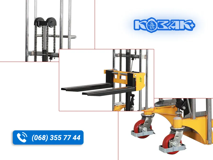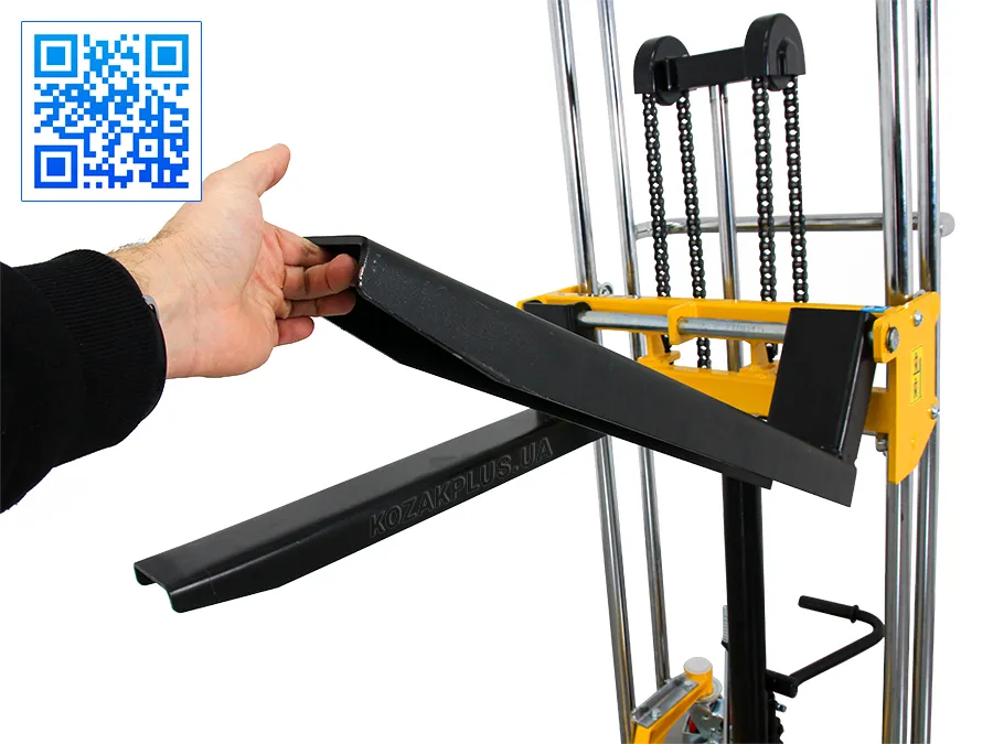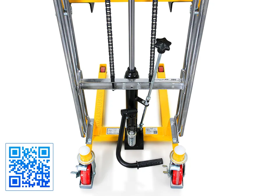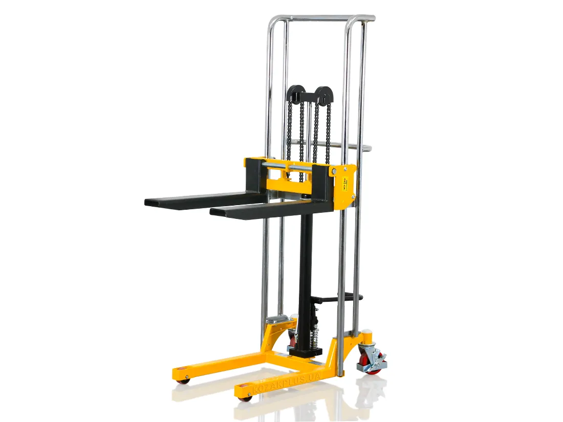 - Довговічність і надійність штабелера забезпечує міцна конструкція із хромованою рамою та хромованим поршневим штоком