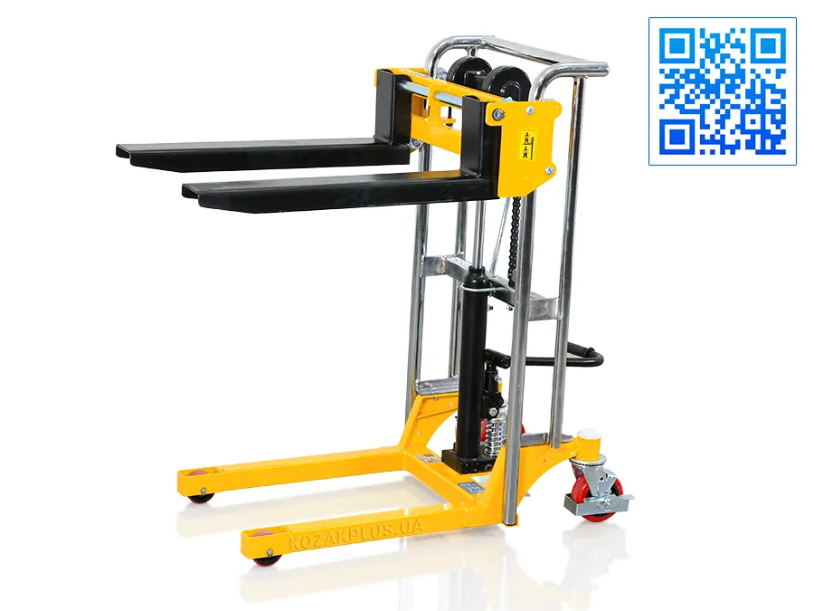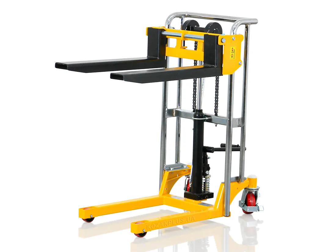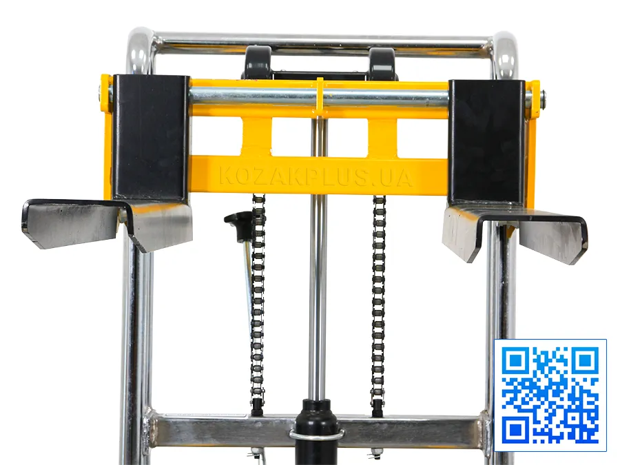- Довговічність і надійність штабелера забезпечує міцна конструкція із хромованою рамою та хромованим поршневим штоком