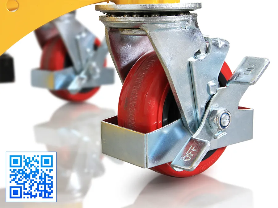 - Стійкість гарантується стабільною ходовою частиною з 2 опорними й 2 керованими колесами