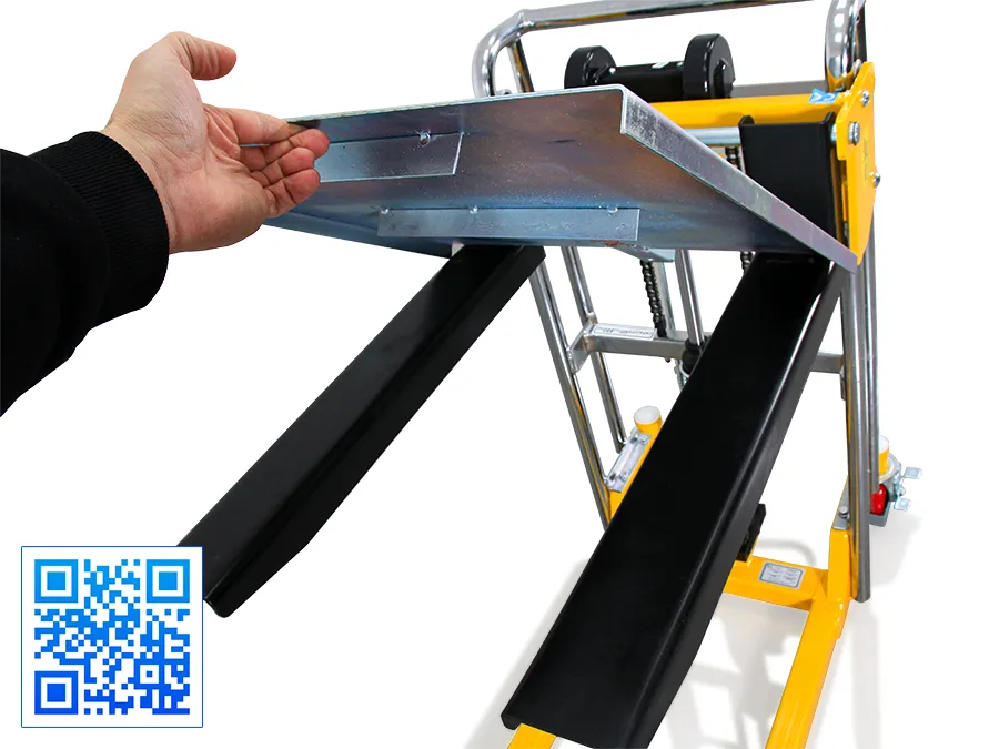 - Платформа штабелера може легко підніматися та опускатися за допомогою гідравлічного ножного насоса зі складною педаллю