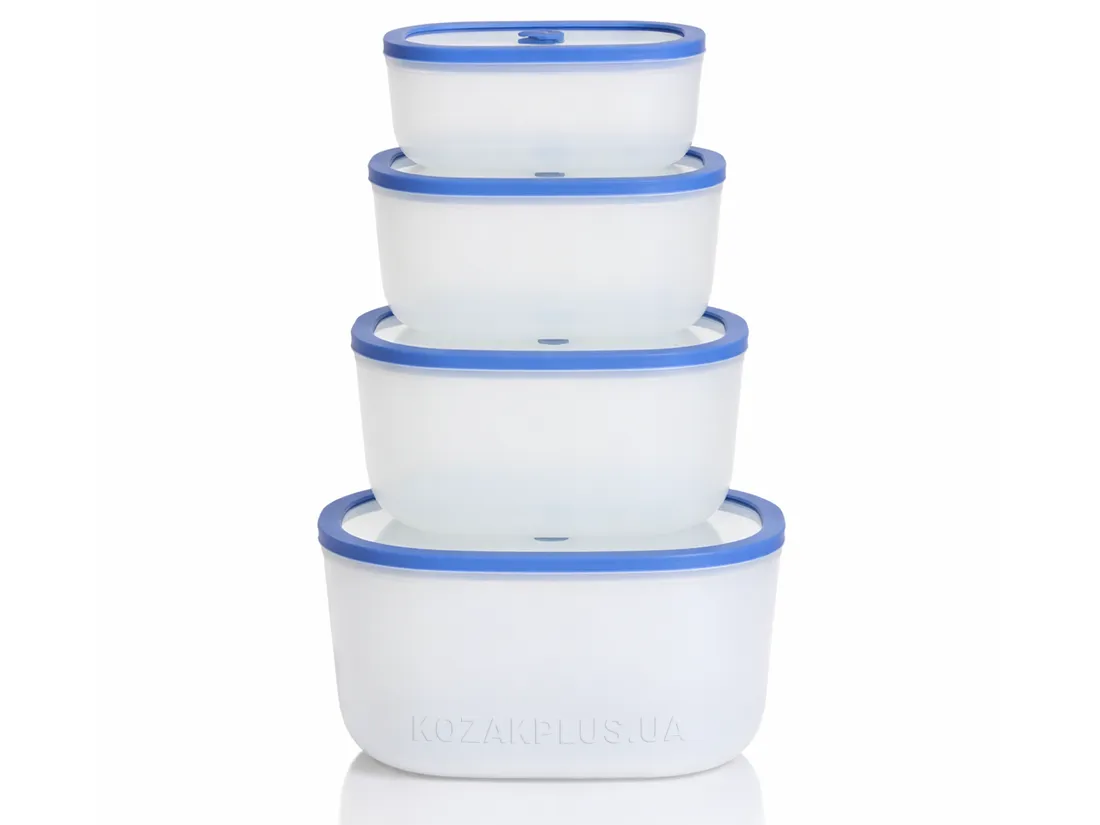 У набір Status Fresko входять 4 вакуумні контейнери об’ємом 0,5 л, 0,9 л, 1,4 л і 2,3 л (вакуумний насос у комплект не входить).